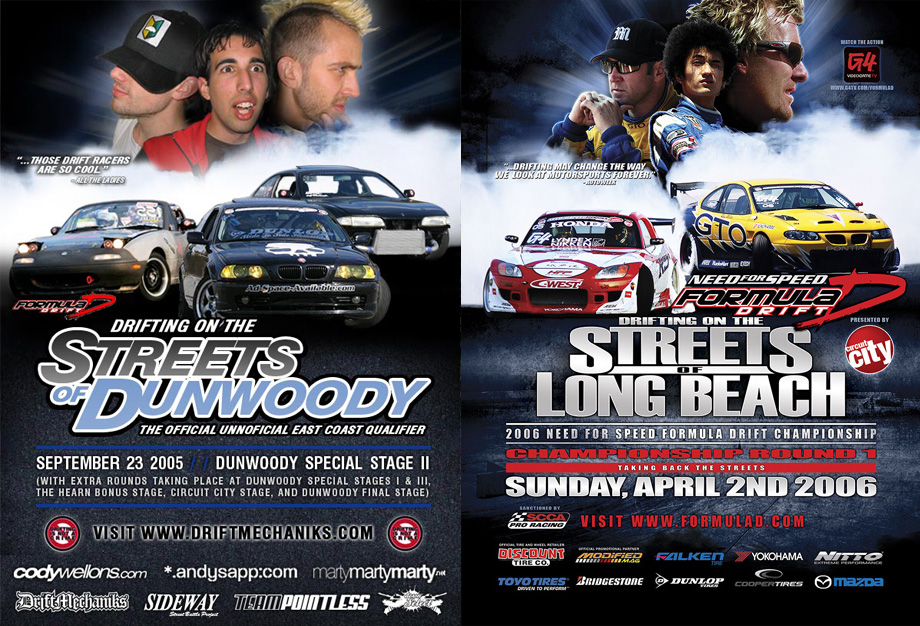 It has been five years since this was created. DriftMechaniks got in a bit of trouble for making what we thought was just a funny take on an existing Formula D poster. We meant no harm with it. This was around the time most of us were just making the transition into the professional arena… and still had street drifting in our blood (I for one, refuse to let that blood thin). This was also around the time that qualifiers were rampantly appearing in the strangest (it seemed) of places. We thought… why not spoof our own qualifier on OUR streets.